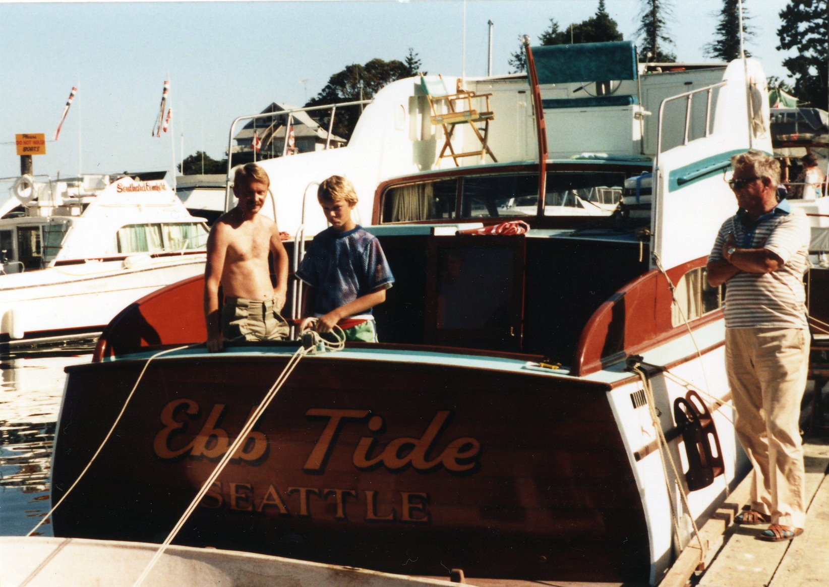 The Ebb Tide, a 34’ Monk design, was finished in time to go cruising for the summer of 1955. My dad, Don Olason, was 11 years old at the time and the Olason family boating tradition was born. Summer after summer was spent plying the waters of Puget Sound, the San Juans and up into Canada as far as Desolation Sound. The time would fly by.